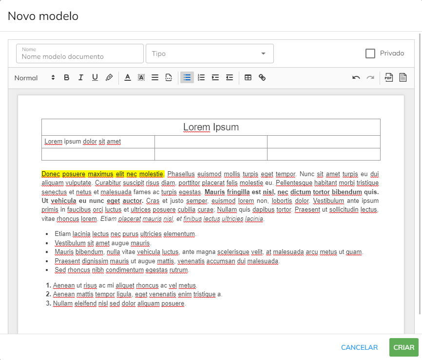 Crie seus próprios modelos e utilize eles em suas avaliações e evoluções. Sendo possivel estar fazendo o download em PDF ou DOCX.